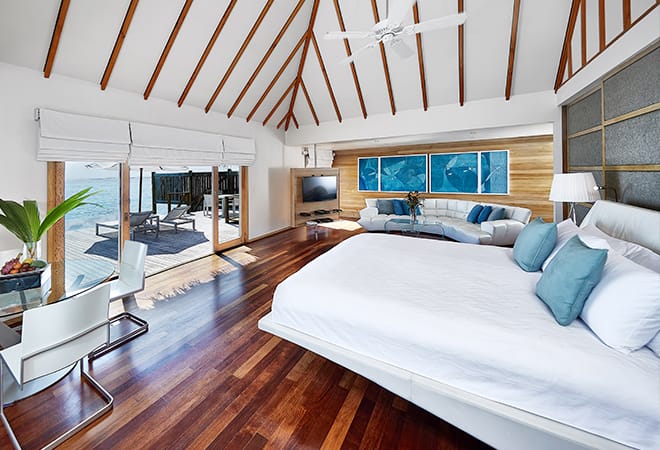 SPA-салон Over-Water Spa на острове Рангали состоит из четырех комнат, в трех из которых установлены стеклянные полы, через которые виден коралловый риф. Уединенная терраса с гидромассажной ванной под открытым небом станет прекрасным завершением предлагаемых SPA-процедур.