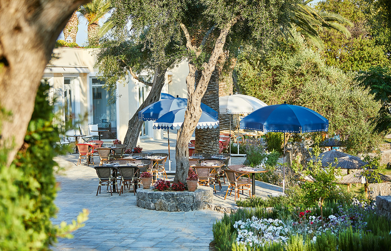 В основном ресторане Mon Repos, открытом для завтраков, обедов и ужинов, представлены блюда греческой и интернациональной кухонь.