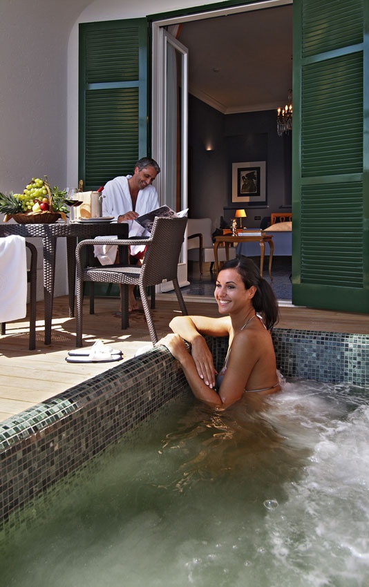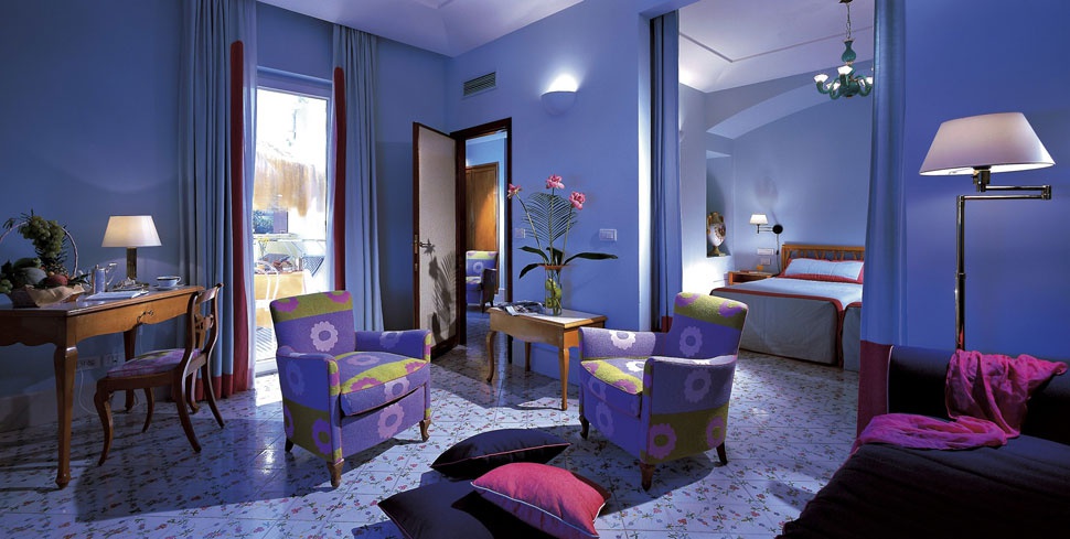 Royal Suite: от 90 м2, расположен в здании Royal, состоит из спальни (35 м2), гостиной (28 м2), двух ванных комнат, живописного балкона или террасы с джакузи или каскадным душем с морской водой, с видом на залив Lacco Ameno.
