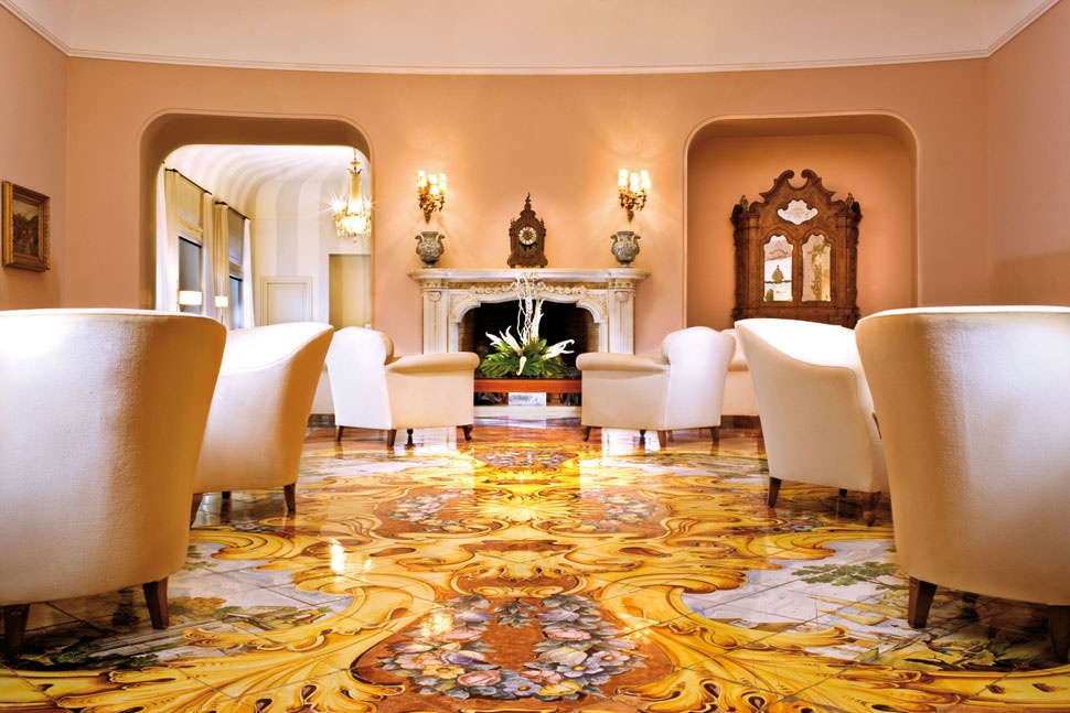 Рядом — музеи, бутики, торговые ряды, туристические магазинчики и лавочки. С многообразием и роскошью окружающих бутиков может поспорить разве что внутреннее убранство гостиницы, выполненное в легко узнаваемом неаполитанском стиле. Легкие изогнутые линии, обворожительные детали и скрупулезно подобранные предметы обстановки и оформления объединяют каждый из 128 номеров, выполненных в индивидуальном стиле, в общую концепцию. Интерьеры отеля отличаются уникальной коллекцией: некоторые холлы и номера расписаны вручную, выложенные плиткой Capodimonte полы, майолика, старинная мебель в стиле великих патрицианских вилл Неаполя, светильники из муранского стекла, и украшающие стены полотна руки Сальвадора Дали — выделяют этот отель из общего ряда.