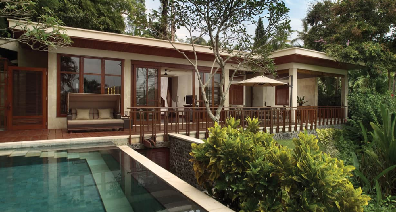 1500 м2. Расположена у реки, состоит из 2 уровней и включает: гостиную с обеденной зоной, кухню, 3 спальни с ванными комнатами, гостевую туалетную комнату, душ на свежем воздухе, террасу с прудом с лотосами, террасу с садом, собственным бассейном и павильоном–гостиной в индонезийском стиле. Максимальное размещение — 9 взрослых или 6 взрослых + 3 ребенка.
