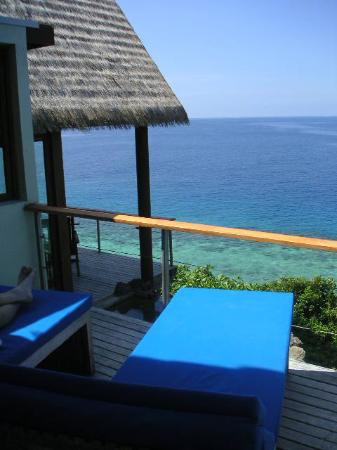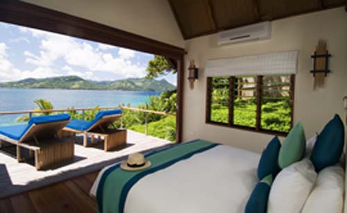 Это один из самых уединенных курортов Фиджи, что делает его идеальным для проведения медового месяца. Первозданная природа, живописные пляжи, лазурные воды лагуны. 16 крытых листьями пальмы вилл отеля построены в традиционном фиджийском стиле – с просторными открытыми жилыми, спальными павильонами, дополненными верандами с панорамным видом на лагуну и располагают частными бассейнами с зонами отдыха. Номера очень стильно декорированы – с роскошными паркетными полами из древесины махогона, облицованными полированным камнем стенами, удобными кроватями под балдахинами.