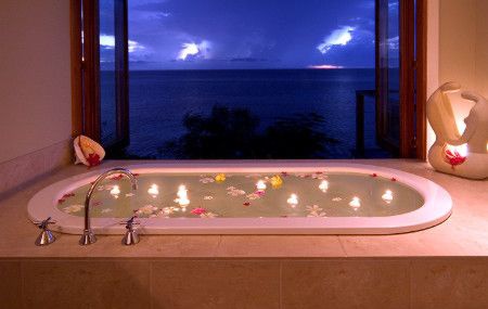 В каждом номере с видом на океан: спальня, ванная комната с огромной ванной, просторная гостиная, кондиционер. Все номера соединены длинной верандой