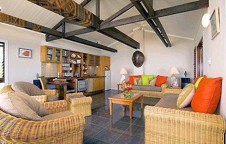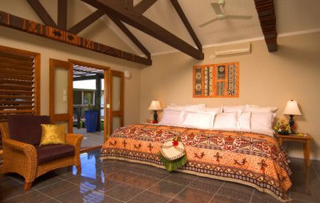 Декор номеров, состоящих из спальни, гостиной, облицованной мрамором ванной комнаты, элегантен и в то же время насыщен национальными чертами – фиджийским рисунками на тканях, традиционной ротанговой мебелью, оригинальным душем на открытом воздухе, вмонтированном в ствол пальмы.