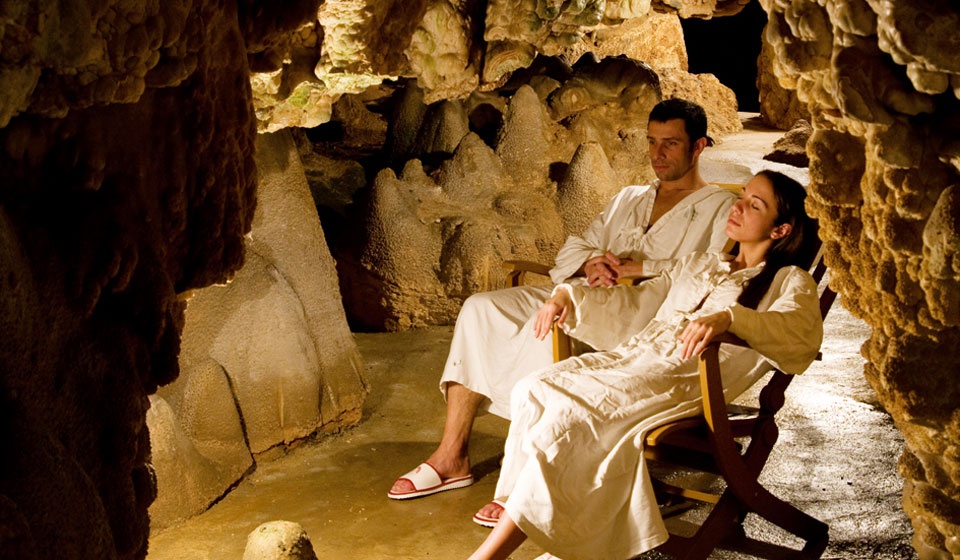 Во многовековом гроте протекают минеральные соле-сульфато-щёлочно-земельные термальные воды при температуре в 34°, а их испарения создают тепловую баню, помогающую при заболеваниях дыхательного аппарата, проблемах кровообращения, гинекологических, нервных, кожных и костно-мышечных заболеваниях. Пациентам предлагаются грязевые процедуры, ингаляции, распыления и аэрозоль.