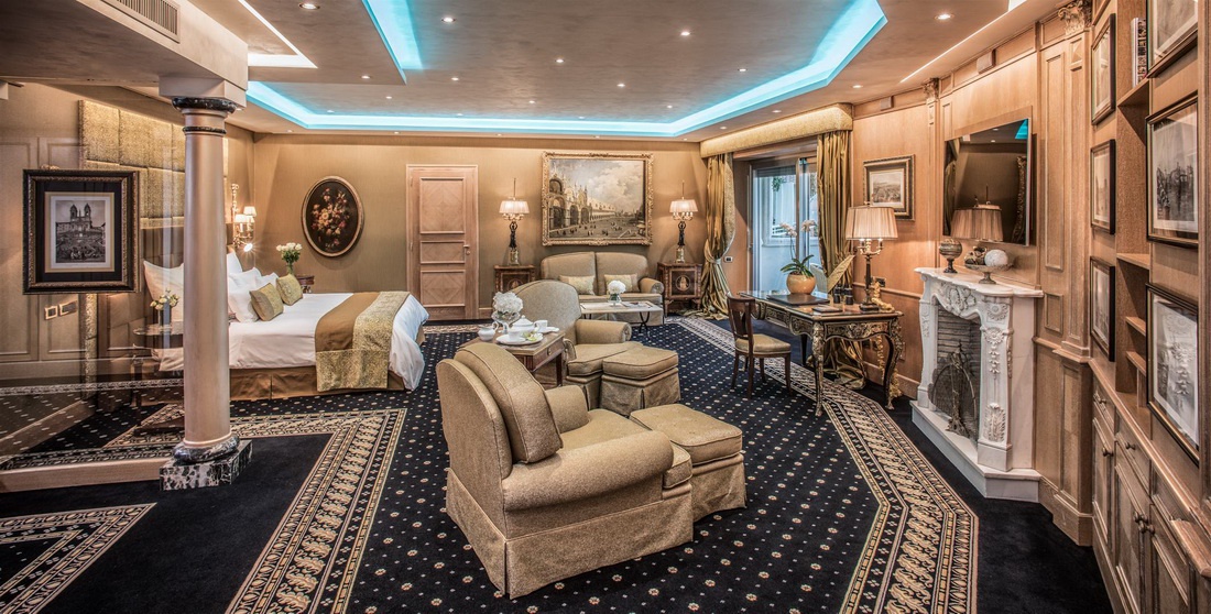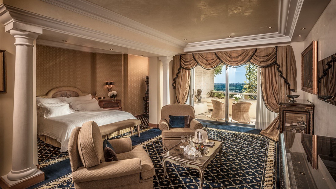134 м2. Роскошный номер, обставленный антикварной мебелью Имперской эпохи и украшенный уникальным старинным ковром Савонри, состоит из гостиной, спальни, гардеробной, 3 балконов с панорамным видом на Рим. Может быть расширен до 250 м2 путем присоединения 2 дополнительных спален с ванными комнатами. Дополнительно в номере – массажное кресло. Гостям номера предоставляются услуги Imperial Club.
