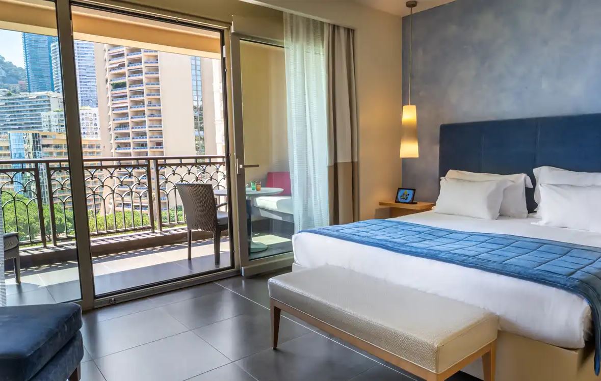Отель находится в княжестве Монако, вблизи восточного района курортной зоны Ларвотто (Larvotto), на авеню Принцессы Грейс (avenue Princesse Grace). Из окон отеля открывается панорамный вид на курорт Рокебрюн Кап-Мартен (Roquebrune-Cap-Martin) и комплекс "Monte-Carlo Beach".