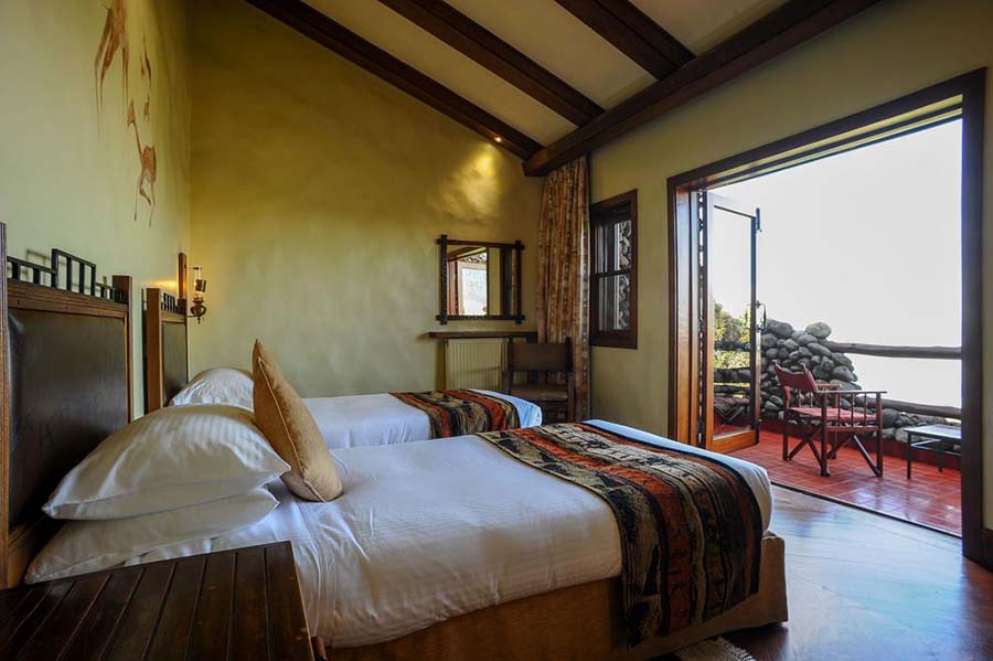 В отеле 75 номеров, включая 74 Standard Room (65 Twin, 8 Double, 1 Triple) и 1 Suite. Все номера имеют балконы с видом на окружающий ландшафт кратера. Интерьеры оформлены в светлых тонах. В комнатах – резная мебель и росписи на стенах, украшения из предметов быта и оружие туземцев-масаев, что напоминает стиль колониальных охотничьих домиков.