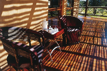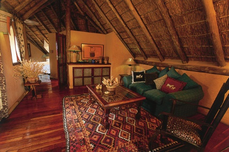 В главном шале в центре лоджа размещаются гостиная, обеденная комната и бар. Обеденная комната обставлена креслами с резными спинками, бар оформлен в приятных теплых тонах и декорирован традиционными аксессуарами бушменов, потолки помещений украшены изысканными люстрами в колониальном стиле. Рядом с главным зданием располагается дворик «бома», в котором, по старинной африканской традиции, подают ужин, приготовленный на большом костре под открытым небом. Неподалеку размещается большой открытый бассейн.