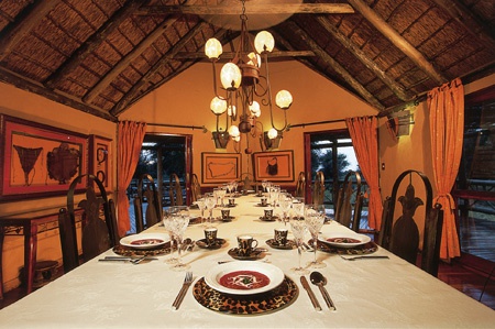 Лодж славится своей домашней кухней, богатой южноафриканскими блюдами. Завтрак, ланч и чай с легкими закусками сервируют в обеденной комнате, здесь же работает бар. Оба помещения обставлены резной мебелью, украшены изысканными люстрами в колониальном стиле и традиционными аксессуарами бушменов. Экзотический ужин, по старинной африканской традиции, готовят и накрывают во дворе «бома», у большого костра под открытым небом. В баре предлагаются коктейли и домашние африканские вина.