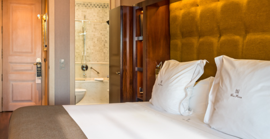 Площадь 60,00 м2 с балконом. Комната с 1 двуспальной кроватью (1,80 м). Двойная дверь и холл. Гардеробная. Круглая гостиная, расположенная на башне этого здания. Полностью оборудованная ванная комната с ванной и душевой кабиной. Окна комнаты выходят на главный проспект Пасео де Грасия.