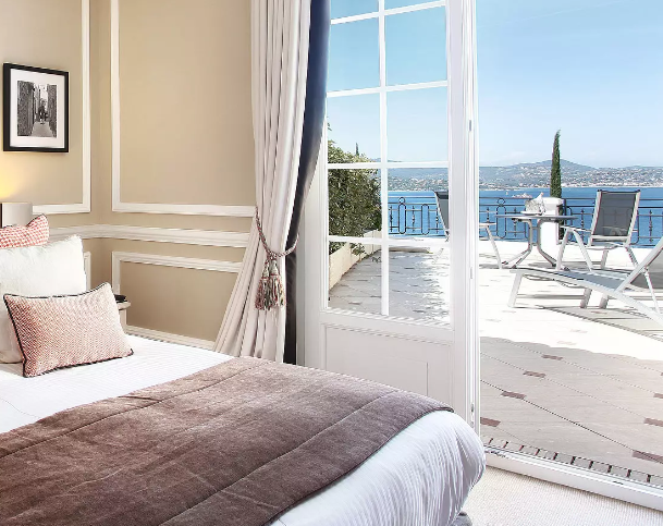 Гассэн, в 5 минутах езды от Сен-Тропе, в 30 км от железнодорожного вокзала Сен-Рафаэля, в 55 км от аэропорта Тулона, в 100 км от аэропорта Ниццы, в 180 км от аэропорта Марселя и в 15 минутах на вертолете из Ниццы (плюс 5 минут от вертолетной площадки до отеля).