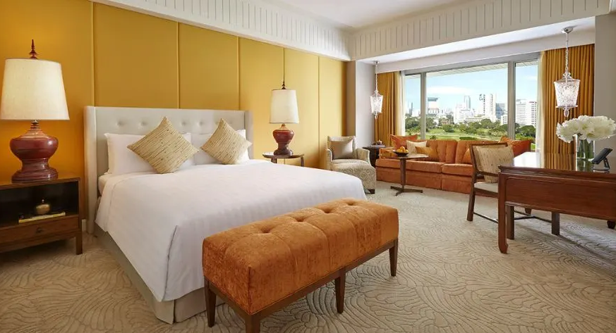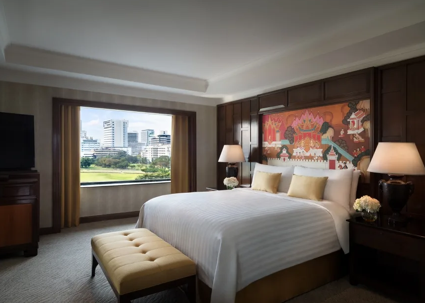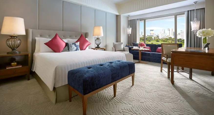 В отеле представлены 354 просторных номера и сьютов, оформленных в стиле нового тайского дизайна: натуральный тиковый текстиль, шелк, антикварные элементы и мраморные ванные — всё ради ощущения городской роскоши среди сада или видов на гольф-клуб.