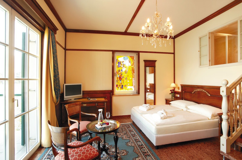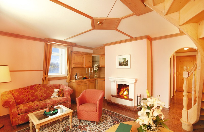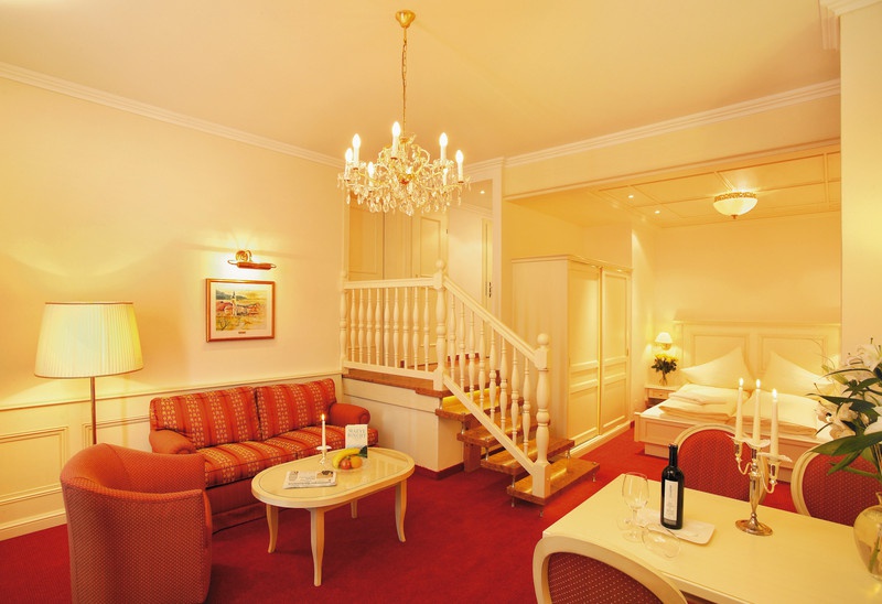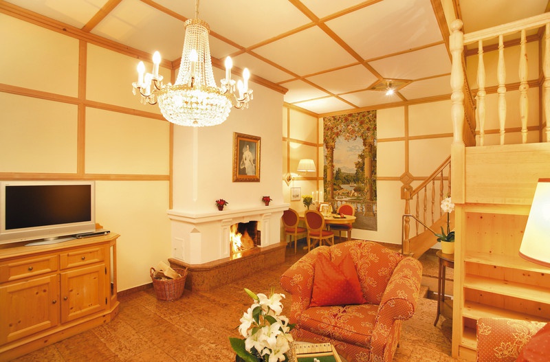 Empress-Elisabeth-Suite — 85 м2. Состоит из 2 уровней, включает: гостиную с камином, 2 спальни, 2 ванных комнаты, джакузи, сауну, балкон, в стоимость входит пользование гаражом.