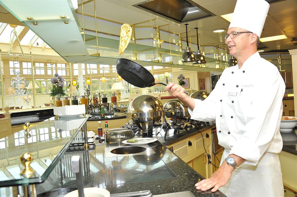6 ресторанов отеля предлагают разнообразие блюд международной и местной кухонь на любой вкус: изысканное меню a la carte блюд австрийской кухни в гастрономическом ресторане Chef's Table; низкокалорийное и вегетарианское меню, блюда, обогащенные витаминами в СПА ресторане, буфет салатов и сыров в уютном зимнем саду. Каждое воскресенье в отеле проходит торжественный ужин под музыкальный аккомпанемент. В барах и кафе отеля — всевозможные напитки, коктейли, легкие закуски и выпечка, а также приятный отдых у камина или под звуки живой музыки.