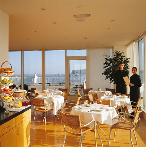 Ресторан Tides Grill с панорамными окнами, откуда открывается чудесный вид на залив, предлагает блюда сезонного меню с изысканными французскими акцентами, приготовленные из свежих местных продуктов, блюда – гриль, а также валлийские деликатесы. В теплую погоду столики сервируются на открытой террасе. По воскресеньям здесь играет джаз.