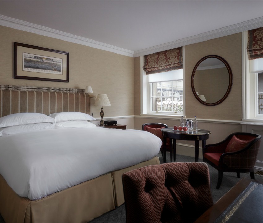 Дизайн внутренних помещений гостиницы сочетает изысканность эпохи короля Эдуарда и современный комфорт. Изящная мебель, предметы антиквариата и изысканные ткани украшают каждый номер, подчеркивая его индивидуальность.