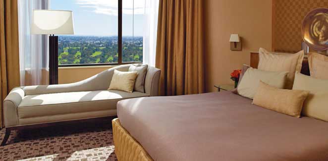 Twin Room (35 кв.м.) — вид на город и холмы Adelaide; современно декорированный номер; состоит из спальни с просторной рабочей зоной, мраморной ванной комнаты с ванной и отдельным душем.