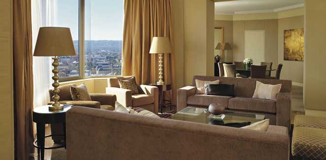 Presidental Suite (157 кв.м.) — живописные виды на реку Torrens и собор Св. Петра; сьют-пентхаус состоит из фойе, гостиной с кабинетным роялем, столовой, буфетной, спальни, двух мраморных ванных комнат с ванными-спа, отдельными душевыми кабинками и сауной. Гости смогут воспользоваться услугами дворецкого (по запросу), и доступом в гостиную Regency Club.