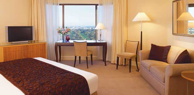 River View King (35 кв.м.) — живописные виды на город, реку Torrens и собор Св. Петра и окружающие парки; современно декорированный номер; состоит из спальни с просторной рабочей зоной, мраморной ванной комнаты с ванной и отдельным душем.