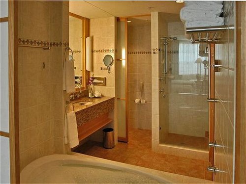Suite — в ванной комнате установлена ванна; имеется: кондиционер, телевизор, аудиосистема, высококачественная видеоаппаратура, двухлиевый телефон, голосовая почта, рабочий стол с лампой, факс и принтер, сейф, мини-бар, обеденный стол, мини-холодильник, аппарат для приготовления чая и кофе, посуда, утюг и гладильная доска, фен. Гостям ежедневно предлагаются коктейли, закуски.