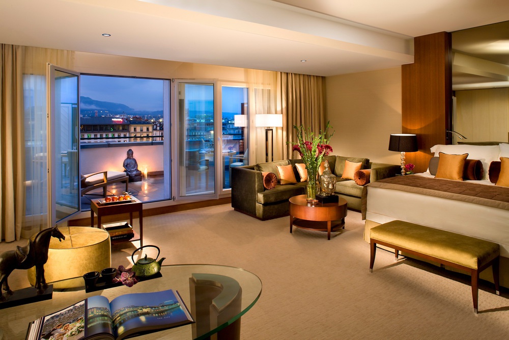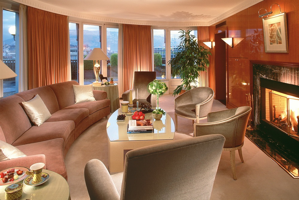 Один из первых отелей, построенных в послевоенной Европе, Mandarin Oriental, Geneve открыл свои двери в 1950 году. В ходе последовательных реставрационных работ, проведенных с 1991 по 1999 годы, интерьеры номеров и холлов полностью преобразились и сегодня окружают гостей изящным современным стилем, отмеченным легким влиянием Ар Деко. Продуманное сочетание естественного и искусственного освещения, оформление в коньячных, шоколадных и кремовых тонах и использование дорогих материалов: итальянского мрамора, роскошных ковров и прекрасных отделочных тканей — создают расслабляющую атмосферу каждого номера. Идиллический симбиоз различных традиций, великолепная кухня, продуманная до мелочей инфрастуктура и полное очарования объединение традиций швейцарского гостеприимства с основными принципами восточной предупредительности и внимания к каждому гостю завоевали отелю великолепную репутацию.