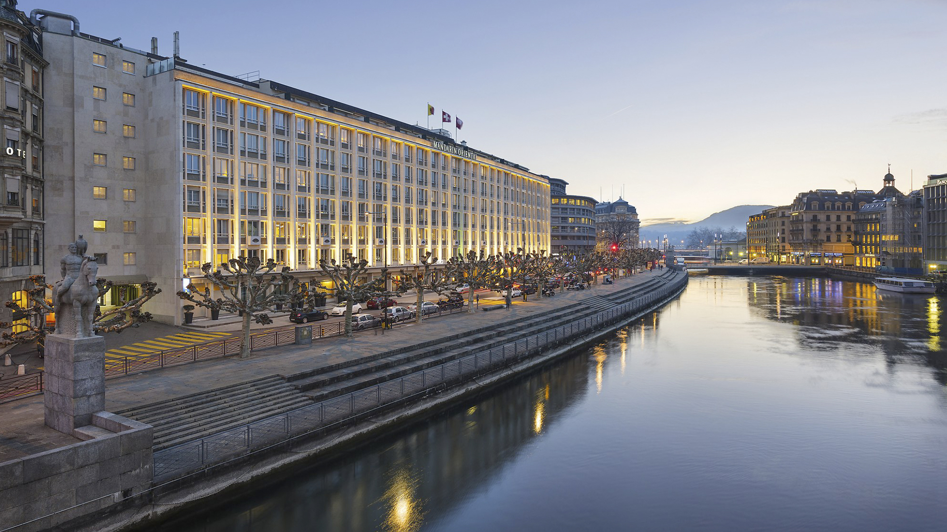 Современное здание гостиницы Mandarin Oriental, Geneve возвышается на правом берегу Роны, в центральной части города, в 10 минутах от железнодорожного вокзала, в 15 минутах езды (7 км) от международного аэропорта Женевы. Удачное расположение отеля, неподалеку от которого находятся основные достопримечательности города, музеи и художественные галереи, известные магазины и крупные банки, не только идеально подойдет интересам всех гостей, но и даст им возможность почувствовать непередаваемую атмосферу исторического центра Женевы. Здесь вы в полной мере смогут оценить красоту города и полюбоваться величием классической архитектуры, торжественных соборов, мощеных улочек и грандиозных монументов, образующих гармоничный ансамбль с чарующими альпийскими пейзажами: нависающими горными массивами, зеркальной гладью озера и быстрым бегом Роны.
