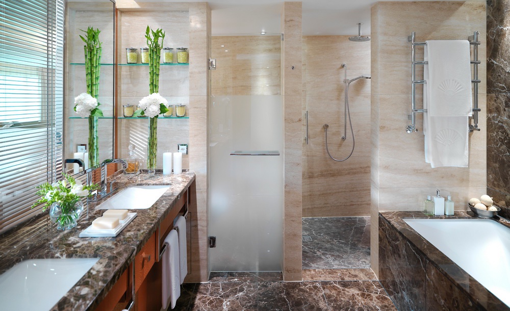 Всего в отеле 197 номеров различных категорий, включая Rooms и Suites. Интерьеры номеров оформлены в современном стиле, отмеченном легким влиянием Ар Деко. Продуманное сочетание естественного и искусственного освещения, оформление в коньячных, шоколадных и кремовых тонах и использование дорогих материалов: итальянского мрамора, роскошных ковров и прекрасных отделочных тканей — создают расслабляющую атмосферу каждого номера. Ванные комнаты состоят из ванны и отдельной душевой кабины.