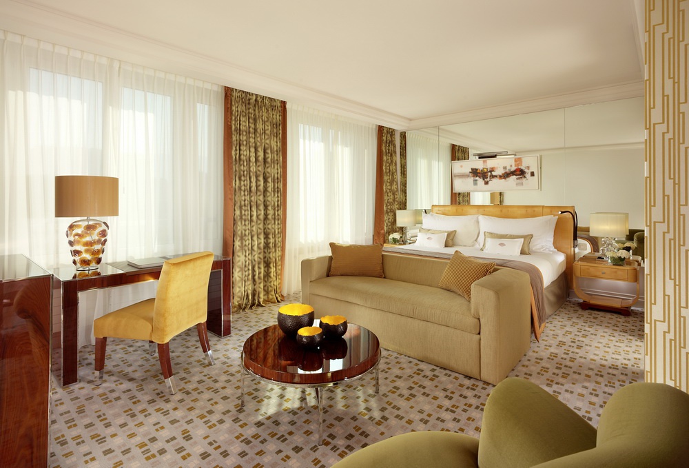 Deluxe Suite: 95 м2, состоит из спальни с кроватью king size, гардеробной, гостиной с обеденной зоной, ванной комнаты, с видом на реку. В некоторых номерах моежт быть гостевая туалетная комната. Возможно соединение номеров. Максимальное размещение — 3 человека.