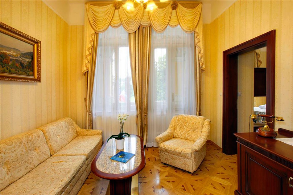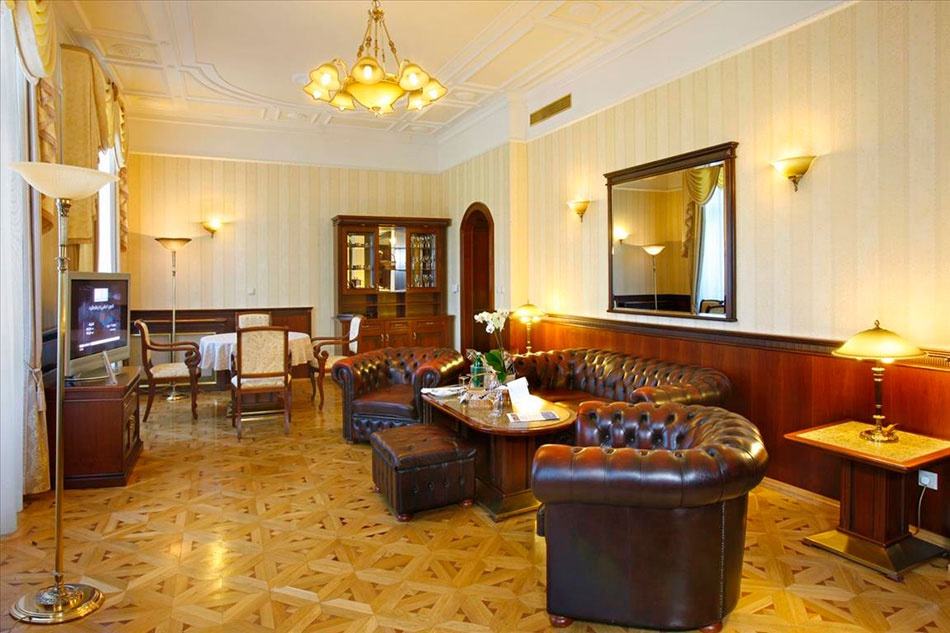 Junior suite: 16-32 кв.м. В номере есть спальня, ванная комната с ванной или душевой кабиной. Расположены на третьем и четвертом этажах. Вид на парк или город.