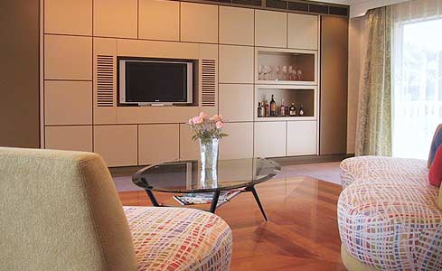 Seefeld (50 кв.м) — на верхнем этаже, в основном здании отеля, оформлен а австрийском стиле, мебель раскрашенная вручную в стиле Folk-Art.