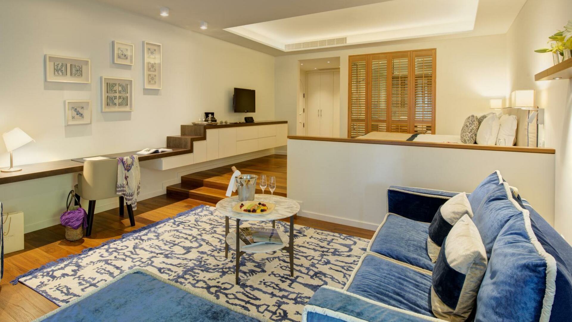 Расположенные по обе стороны главного здания Vila Vita Parc, двухуровневые номера Junior Suite отличаются лаконичным и современным стилем. Детали, вдохновленные океаном, и мозаика из португальской плитки отсылают к окружающей обстановке Vila Vita Parc.