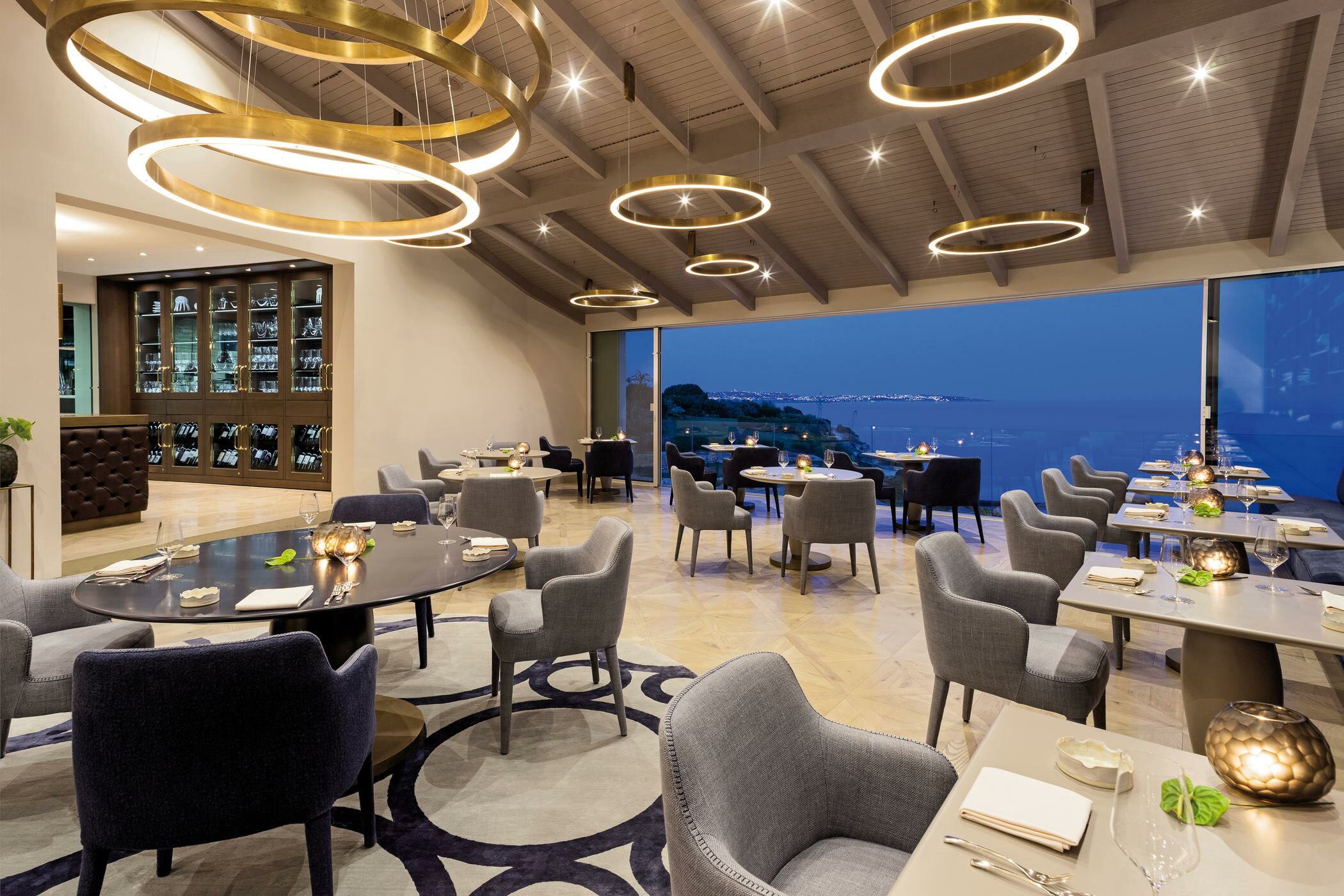 Просторные гостиные и обеденные зоны в номерах категории Grand Suite отличаются современным дизайном, минималистичной цветовой палитрой с вкраплениями морской тематики и обилием естественного света.