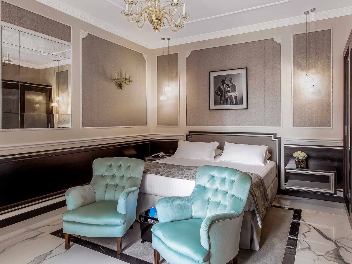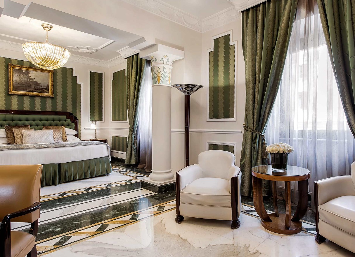 Полулюкс в стиле ар-деко, в котором сохранилась большая часть оригинальной мебели и декора. В некоторых люксах есть балконы с видом на знаменитую улицу Виа Венето.