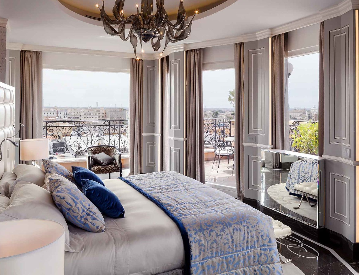 The Ludovisi Suite: 190 м2, новый фешенебельный номер, расположен на 8 этаже, состоит из 1-3 спален, 1-4 ванных комнат, элегантной гостиной, столовой, коридора, соединяющего номер со спальнями, огромной меблированной террасы с видом на город, украшенной пряными травами. Максимальное размещение — 2 взрослых + 1 ребенок. Гости могут пользоваться персональным лифтом, также гостям предоставляются услуги дворецкого.