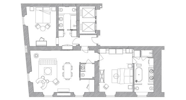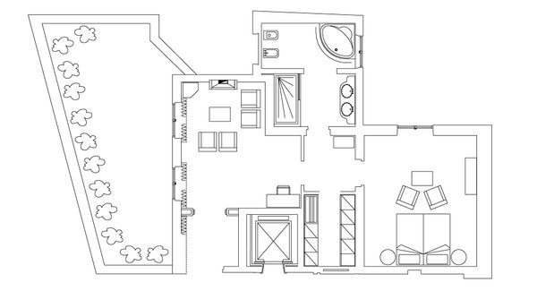 The Dolce Vita Suite: 65 м2, номер расположен на 3 этаже, с видом на Via Veneto; номер состоит из просторной гостиной с обеденной зоной и камином, спальни, ванной комнаты с ванной и душем, гардеробной. Максимальное размещение — 2 взрослых + 1 ребенок.