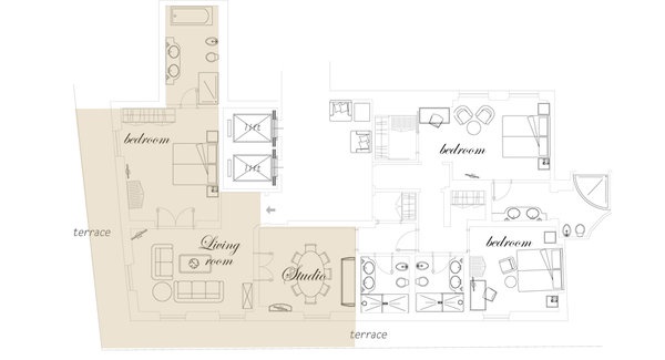 The Margherita Suite: 100 м2, расположен на 6 этаже, состоит из спальни, уютной гостиной с камином и библиотекой, просторной гардеробной, ванной комнаты с гидромассажной ванной и душевой, террасы с джакузи. Максимальное размещение — 2 взрослых + 1 ребенок.