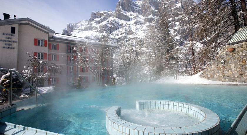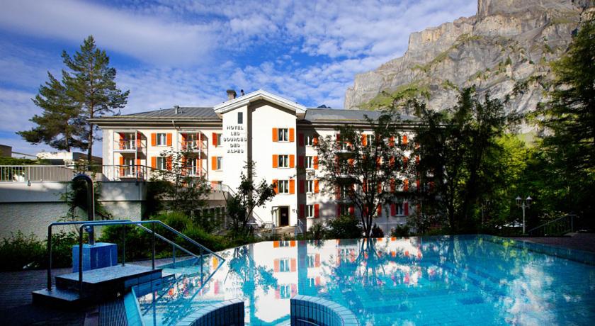 Небольшой отель Les Sources des Alpes расположен на южных склонах Швейцарских Альп в Лейкербаде на юго-западе Швейцарии. Его название дословно означает «альпийские источники»: эта изысканная гостиница примостилась на высоте 1400 метров над уровнем моря, неподалеку от того места, где на поверхность выходят горячие источники, температура которых достигает 51 градусов по Цельсию. Мягкий высокогорный климат, величественный горные пейзажи и лечебные источники вот уже более 160 лет привлекают сюда гостей со всего мира.