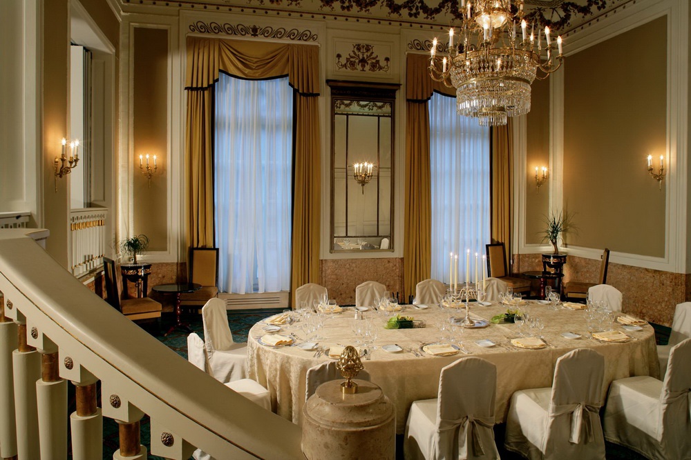 Элегантный ресторан Doney с мраморными колоннами и полами, выходящий на знаменитую Via Veneto, предлагает изысканные блюда средиземноморской кухни, здесь есть вегетарианское меню.