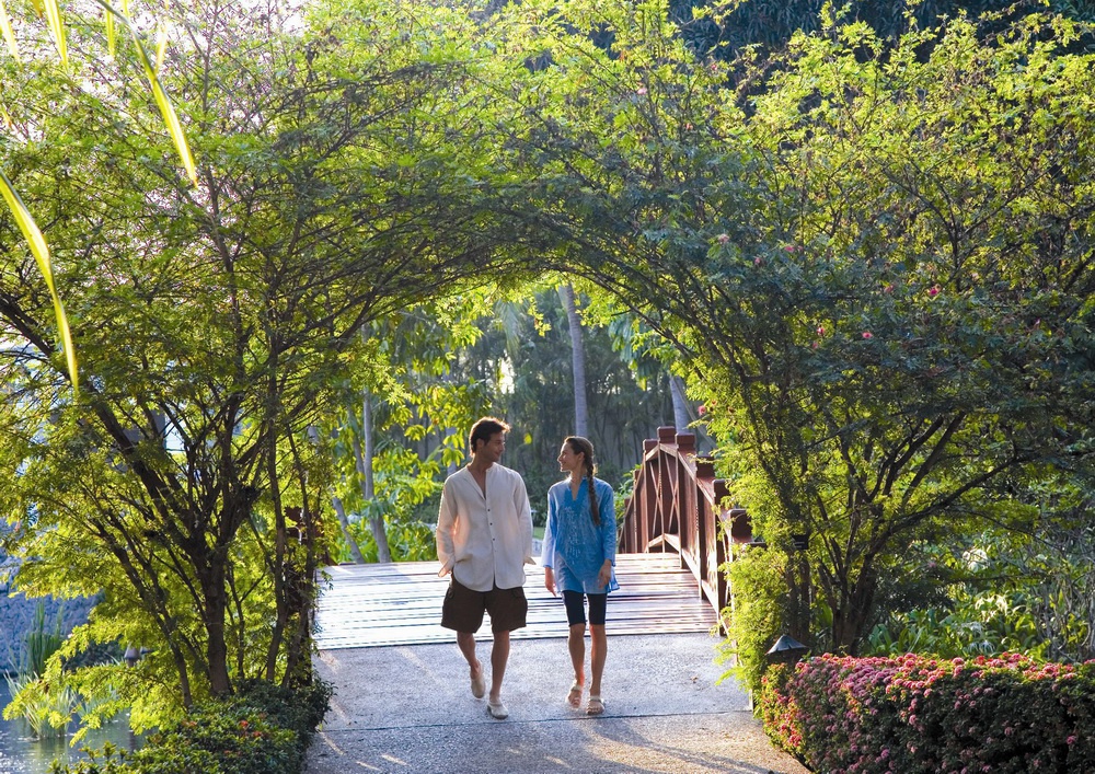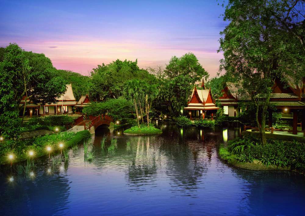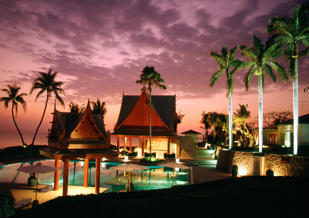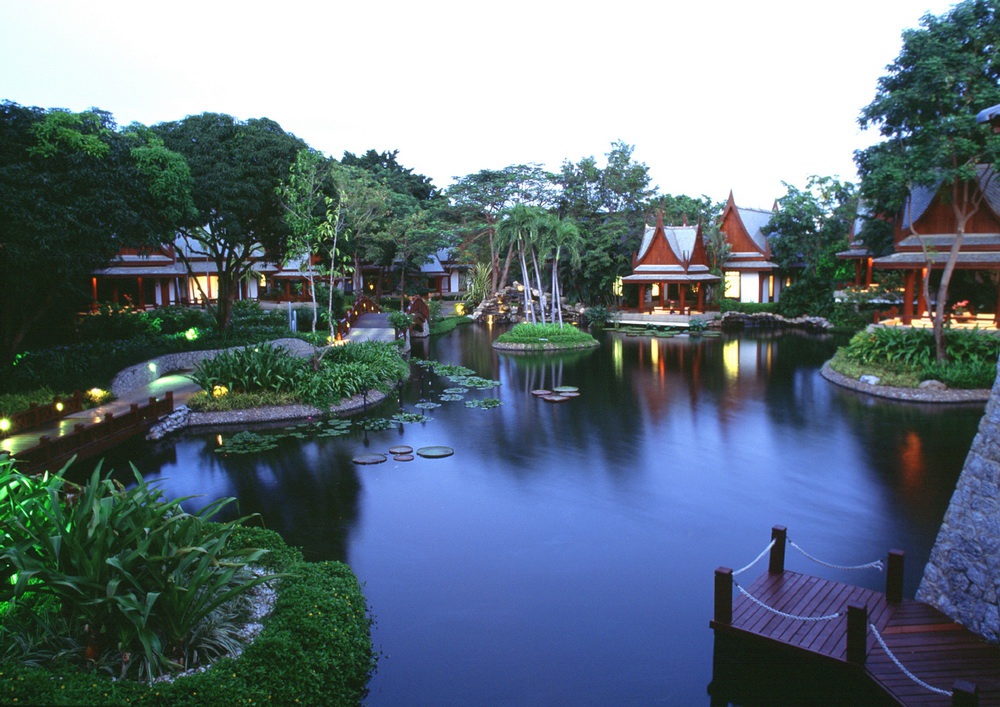 Тайский павильон. 17 номеров (36 м2). Тайские павильоны построены в соответствии с канонами традиционной тайской архитектуры. Они объединены в кластеры по три павильона в каждом, к которым примыкают общая беседка и терраса.