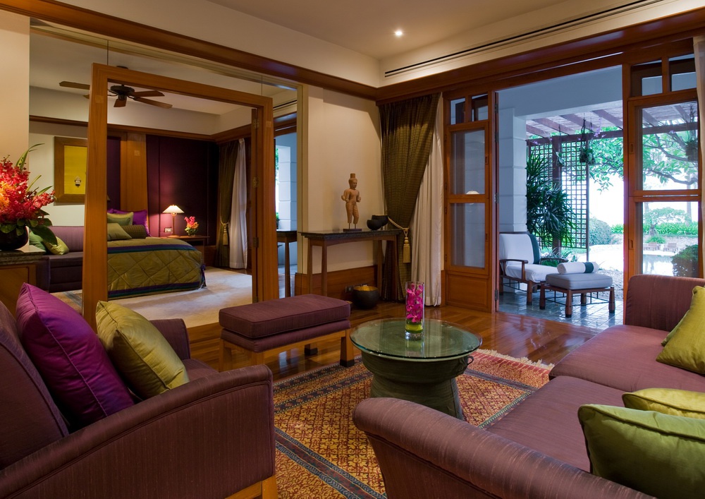 Juniper Suite. 1 номер (68 м2). Расположенный на верхнем этаже, между морем и небом, этот элегантный номер категории люкс дает возможность любоваться бескрайними просторами Сиамского залива. Кроме спальни, гардеробной, ванной и туалетных комнат он также имеет гостиную.