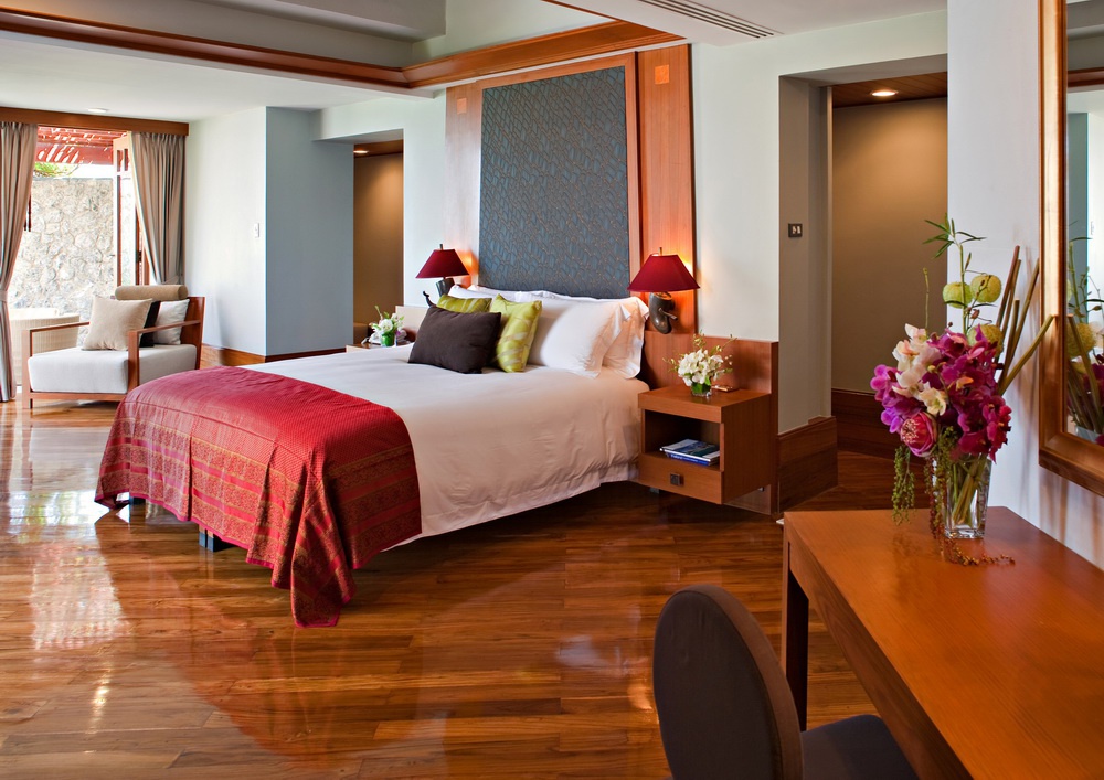 Leelawadee Suite. 1 номер (147 м2). Самый изысканный и большой люкс порадует Вас истинным комфортом. Он состоит из гостиной и столовой зон, двух ванных и трех туалетных комнат, спальни с примыкающей к ней гардеробной, а также террасы с джакузи и небольшим садом.