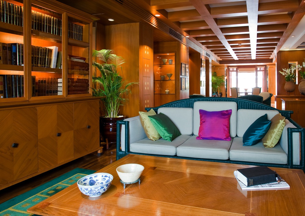 Golden Bo Suite. 1 номер (102 м2). Особой атмосферой этот люкс обязан использованным в его оформлении традиционным материалам – тайскому шелку, тиковому дереву и бамбуку. Номер состоит из просторной гостиной, гардеробной, столовой, спальни и террасы, с которой можно как спуститься по ступенькам к общему бассейну, так и подняться на собственную верхнюю террасу, чтобы насладиться солнечным светом, отдыхая в шезлонге.