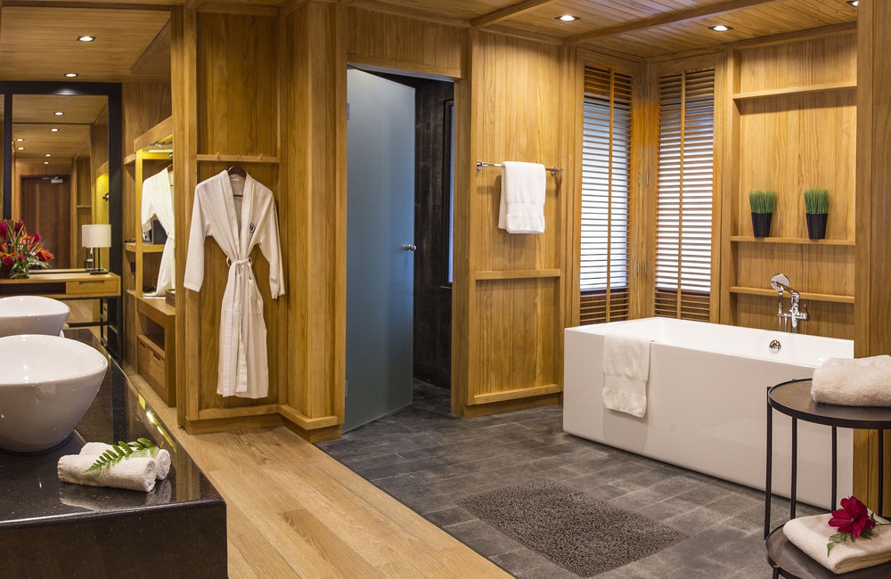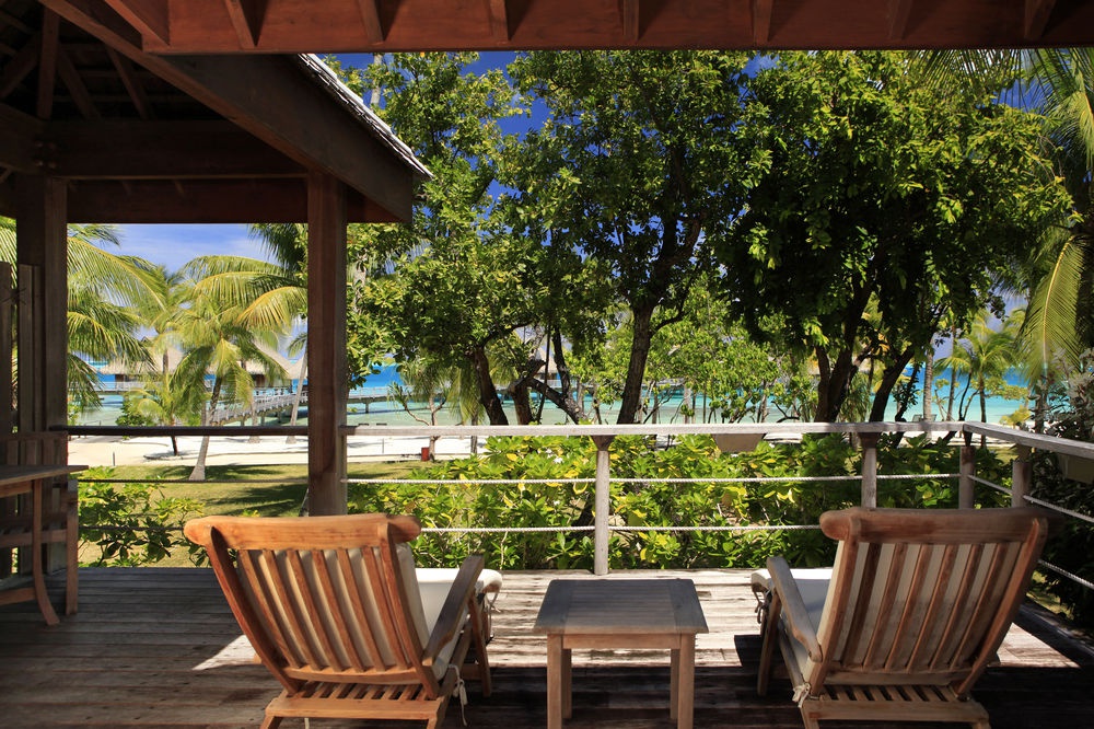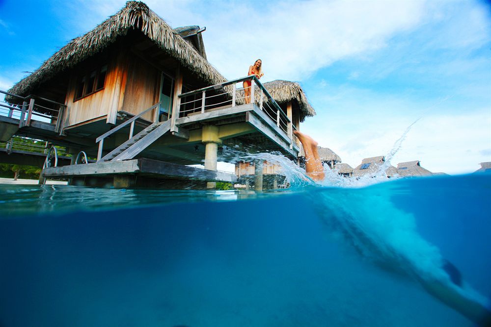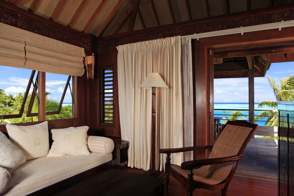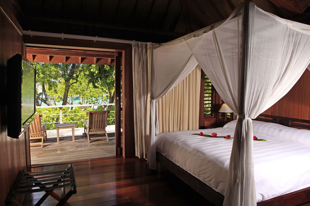 Overwater Villa: расположена на сваях над лагуной; состоит из спальни, гостиной, ванной комнаты, балкона.