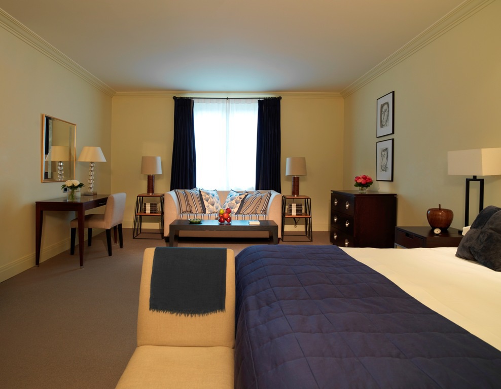 Classic Room: от 28 м2. Состоит из спальни с кроватью king-size или двумя кроватями twin, отделанной мрамором ванной комнаты.