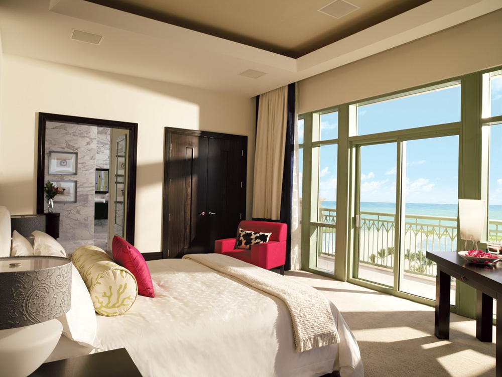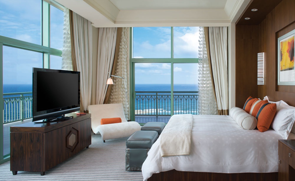 Deluxe Ocean Suite 62,4 м2; состоит из спальни с кроватью king size, ванной комнаты с двумя туалетными столиками, ванной, душевой кабиной для двоих, с видом на море. В номере — оригинальный интерьер в ярких тонах.