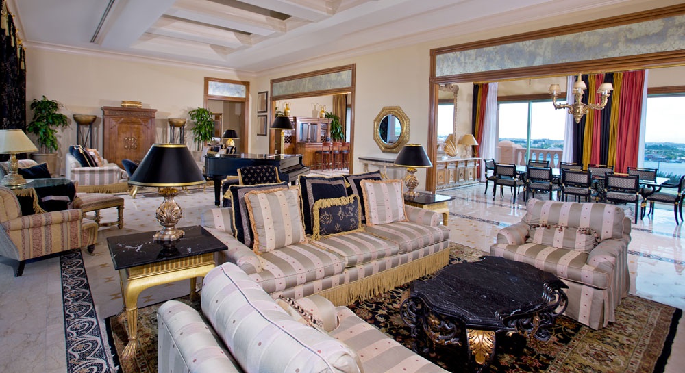 Presidential Suite 255 м2; расположен на верхнем этаже; роскошный номер состоит из спальни с фирменной кроватью Atlantean size, просторной ванной комнаты с джакузи и душевой для двоих, гостиной, столовой, сервированной на 10 человек, комнаты для занятий спортом, полностью оборудованной кухни, небольшой ванной комнаты, большого балкона с превосходным видом на море. В номере — элегантная мебель, изящные покрывала, картины современных авторов, домашний кинотеатр. Для гостей — привилегии VIP, включая посещение клубной гостиной.