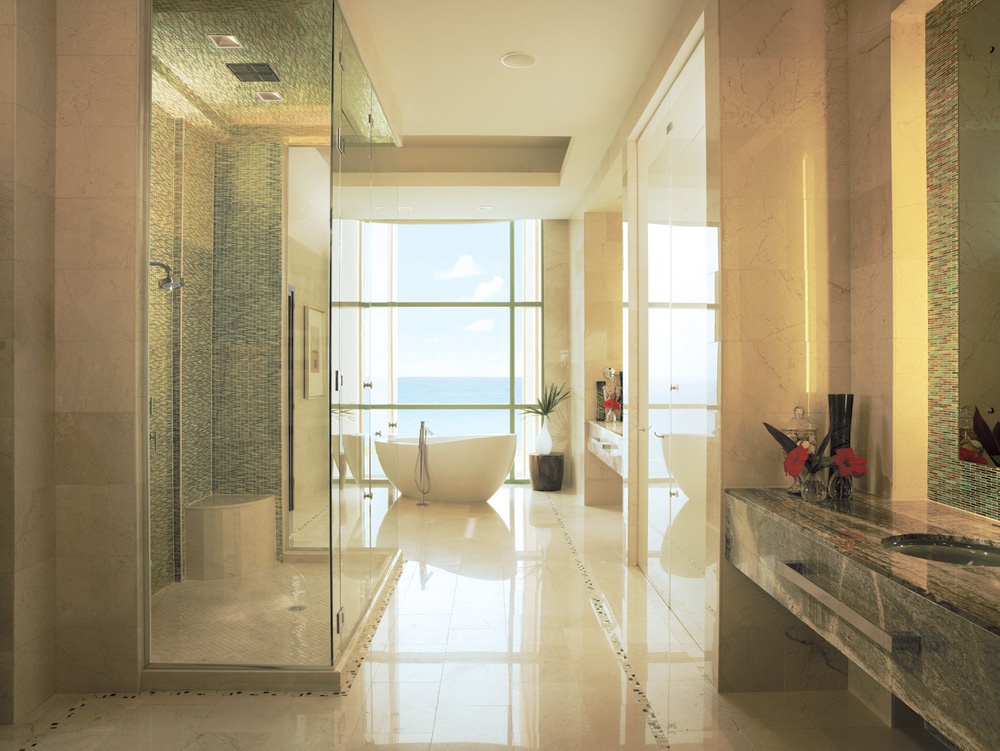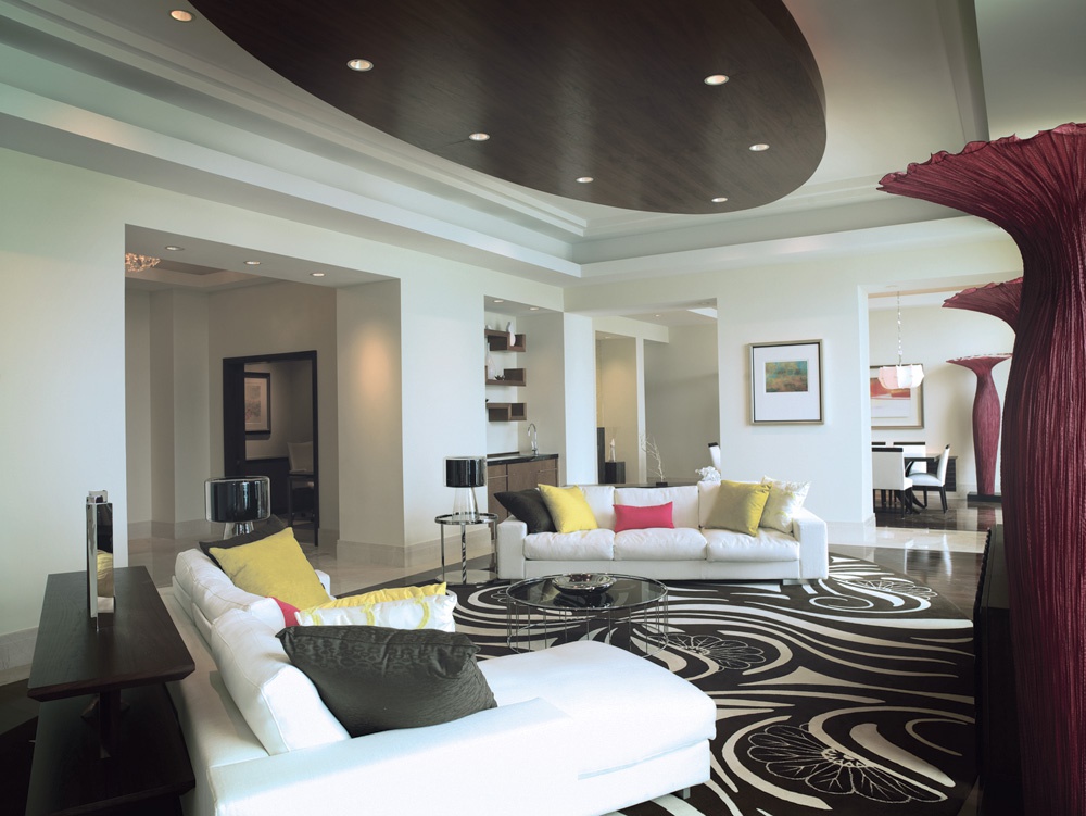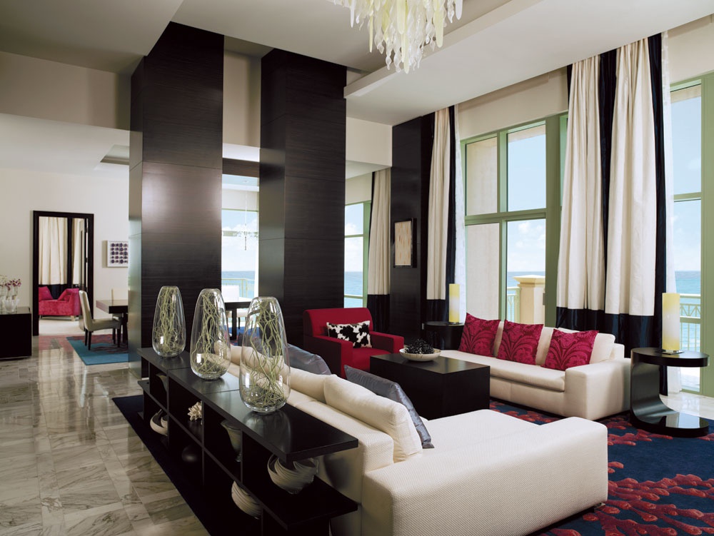 Suite 90-159 м2; состоит из одной или двух спален с кроватью king size, двух ванных комнат (в главной – 2 мраморных туалетных столика, ванна, отдельная душевая кабина), гостиной с диваном (может использоваться как дополнительная кровать), столовой зоны, полностью оборудованной кухни, балкона с видом на пляж и на море.