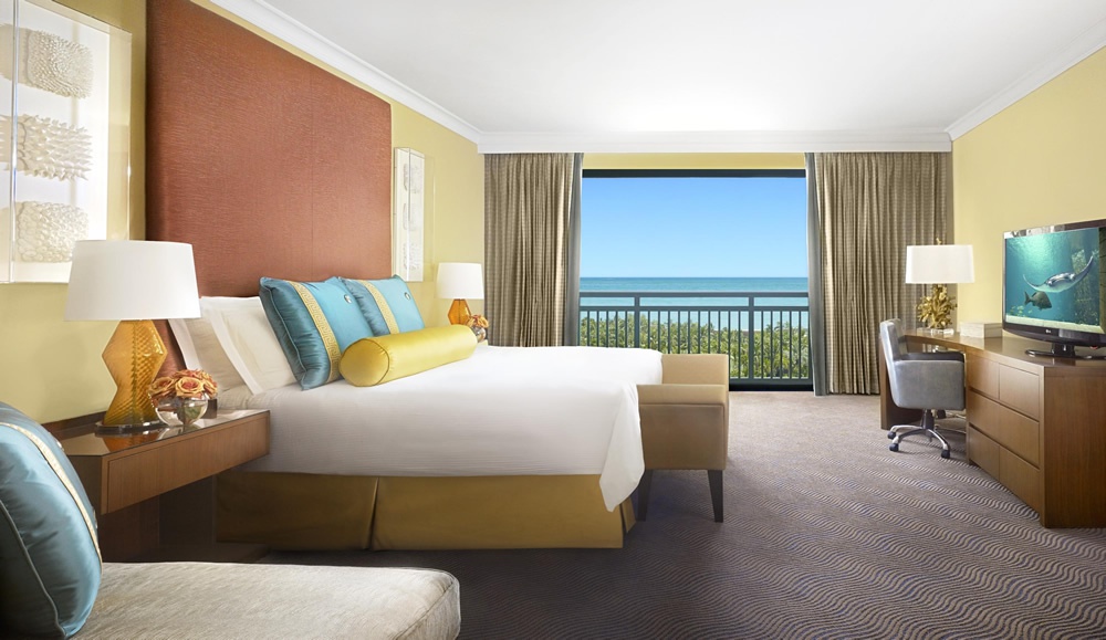 Guest Room состоит из спальни, ванной комнаты, большого балкона с видом на остров, здания отеля и, частично, на море.