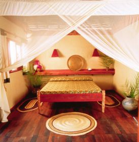 В отеле 10 бунгало двух категорий: Luxury Bungalow и Sensation Bungalow. Все домики очень просторные. Интерьеры выдержаны в панафриканском стиле: большие деревянные кровати с сетью от москитов, резная мебель из красного дерева, добротные двери и оконные рамы. Постельное белье импортировано из Италии. Ванные комнаты имеют двойные ванны, раковины, душ, биде и двойные туалеты.